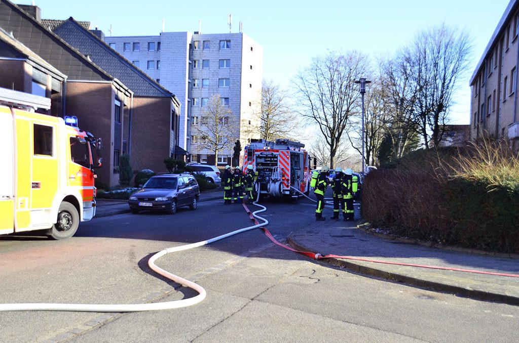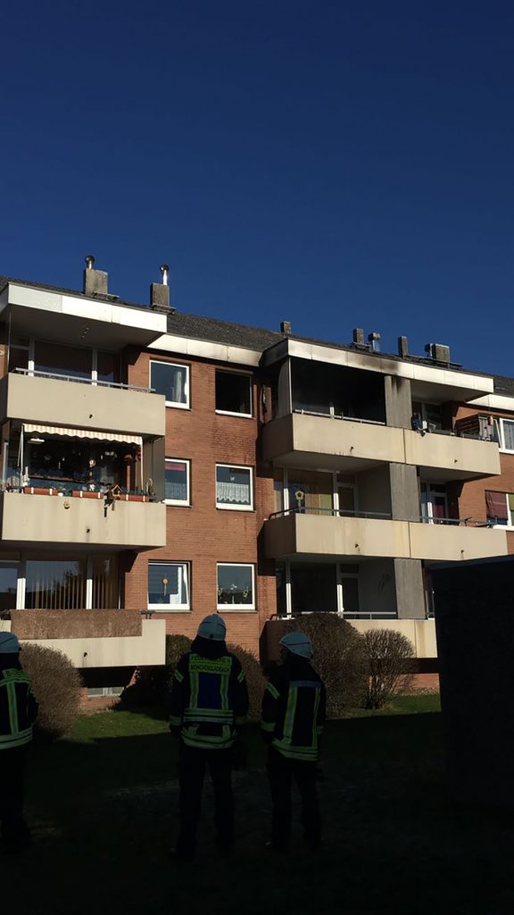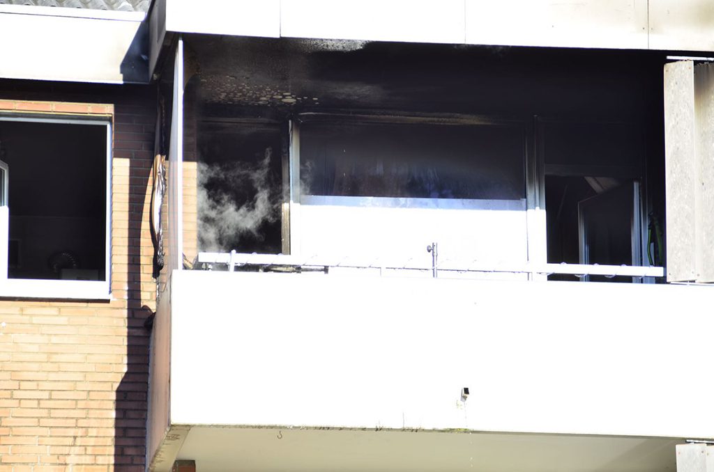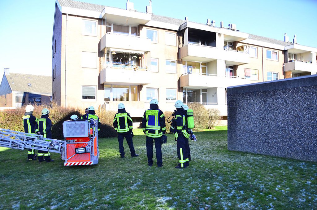 Mönchengladbach (rix). Am Donnerstagmittag kam es auf der Straße „Hülserbleck“ zu einem Brand in einem Mehrfamilienhaus. Aus bisher noch ungeklärter Ursache brannte im zweiten Obergeschoss die Einrichtung des Wohnzimmers. Beim eintreffen der Feuerwehr, schlugen auf der Rückseite des Gebäudes bereits Flammen aus der Wohnung auf den Balkon über.