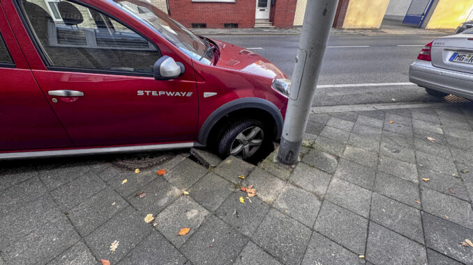 Mönchengladbach. Ein kurioser Zwischenfall hat am Donnerstagmorgen in Mönchengladbach für Aufsehen gesorgt: Auf der Poststraße ist ein am Straßenrand abgestellter Pkw teilweise im Gehweg eingebrochen. Ursache war ein gebrochener Kanal, der den Untergrund über längere Zeit unterspült hatte.