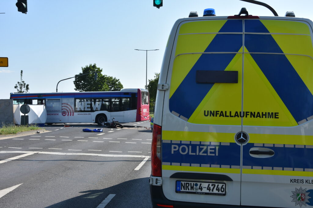 Mönchengladbach. (ots) Am Donnerstagnachmittag, 19. Juni, ist es gegen 16 Uhr auf der Gladbacher Straße im Kreuzungsbereich zur Groterather Straße zu einem tödlichen Verkehrsunfall gekommen: Ein 23-jähriger Motorradfahrer fuhr, aus Richtung Dorthausen kommend, auf der Gladbacher Straße in Fahrtrichtung Rheindahlen. An der Kreuzung Groterather Straße kollidierte er mit einem Linienbus der NEW, der seinerseits aus Richtung Kothausen kam.