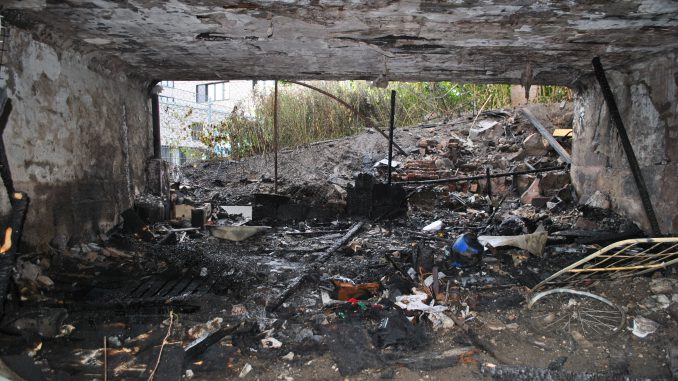 Die ersten Kräfte der Feuerwehr fanden einen illegal erbauten Unterstand unter einem Nebengleis vor, welcher in voller Ausdehnung brannte. Die Flammen schlugen bis auf das Gleis und hatten die Brücke so stark beschädigt, das abplatzende Betonteile auf die viel befahrene Theodor-Heuss-Straße fielen. Das Feuer konnte mit zwei Trupps unter Atemschutz schnell gelöscht werden. Die Brücke ist durch den Brand jedoch so stark beschädigt, dass das Nebengleis durch den Notfallmanager der Bahn gesperrt werden musste.
