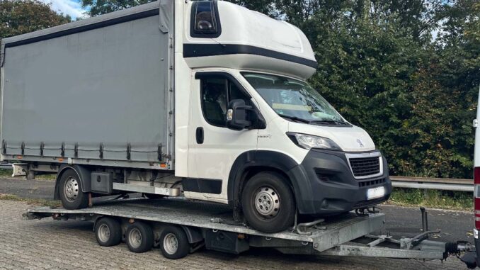 Mönchengladbach. (ots) Am Donnerstag, 10. Oktober, hat der Verkehrsdienst der Polizei Mönchengladbach an der Bundesstraße 57 ein erheblich überladenes Gespann kontrolliert und dem Fahrer (55) die Weiterfahrt untersagt: Er beförderte mit seinem Lkw einen weiteren Lkw auf einem Anhänger.