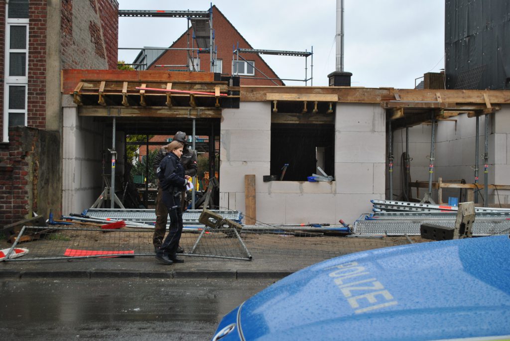 Die Polizei dokumentierte den Vorfall, nahm auch das restliche noch stehende Gerüst in Augenschein. Dort waren die nötigen Anker gesetzt. „Ich habe drauf gestanden und gewackelt, da rührt sich nichts“ so ein Polizist vor Ort.