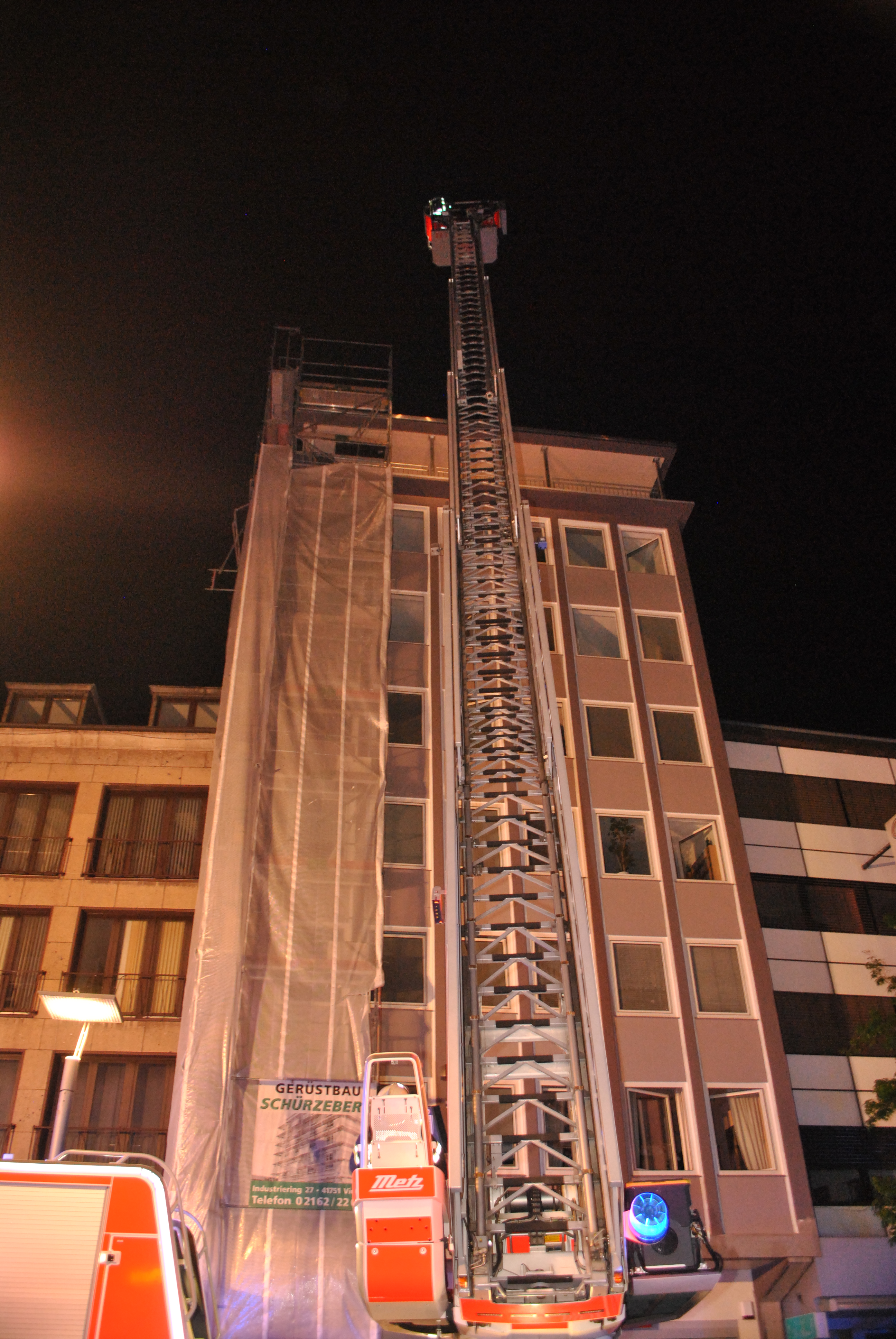 In der Nacht zum Mittwoch wurde die Mönchengladbacher Feuerwehr zur Hindenburgstraße alarmiert. In einem Wohn- und Geschäftshaus hatten mehrere Rauchmelder Alarm geschlagen. Bewohner meldeten Rauch in Ihren Wohnungen. Bereits auf der Anfahrt war eine Rauchentwicklung sichtbar. Die Einsatzkräfte leiteten sofort die Menschenrettung über zwei Drehleitern ein. Eine Flucht durch den Hausflur war aufgrund des Brandrauches nicht mehr möglich. Insgesamt wurden acht Personen sowie drei Katzen durch die Feuerwehr gerettet.