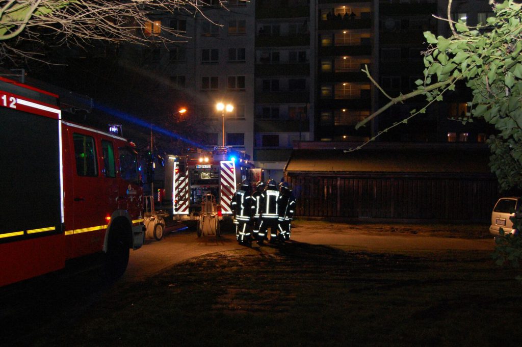 Mönchengladbach. Am Donnerstagabend gegen 21:15 Uhr wurde die Feuerwehr zu einem Wohnungsbrand im 1. Obergeschoss einer Wohnanlage an der Straße Zur Burgmühle im Ortsteil Odenkirchen alarmiert. Laut Meldung konnte nicht ausgeschlossen werden, dass sich noch ein Kind in der Wohnung befand. Beim Eintreffen der Einsatzkräfte war eine Rauchentwicklung im Flur feststellbar. Alle 16 Personen, die sich zum Zeitpunkt des Brandausbruchs zu einer Feier in der Wohnung befanden und von denen mehrere schon eigene Löschmaßnahmen mit Feuerlöschern durchgeführt hatten, waren bereits ins Freie in Sicherheit gelangt.