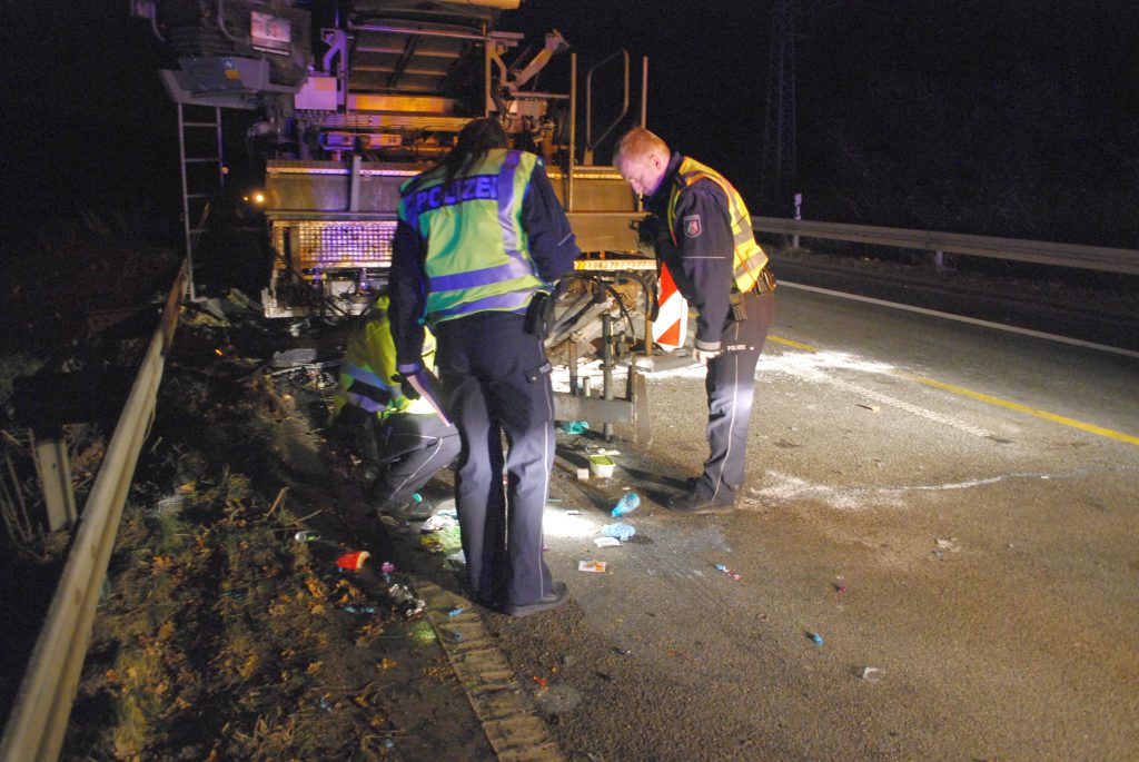 Ein 38-jähriger Autofahrer ist aus bisher ungeklärter Ursache auf die durch eine Baustelle gesperrte linke Spur gekommen und in eine dort abgestellte Baumaschine geprallt.