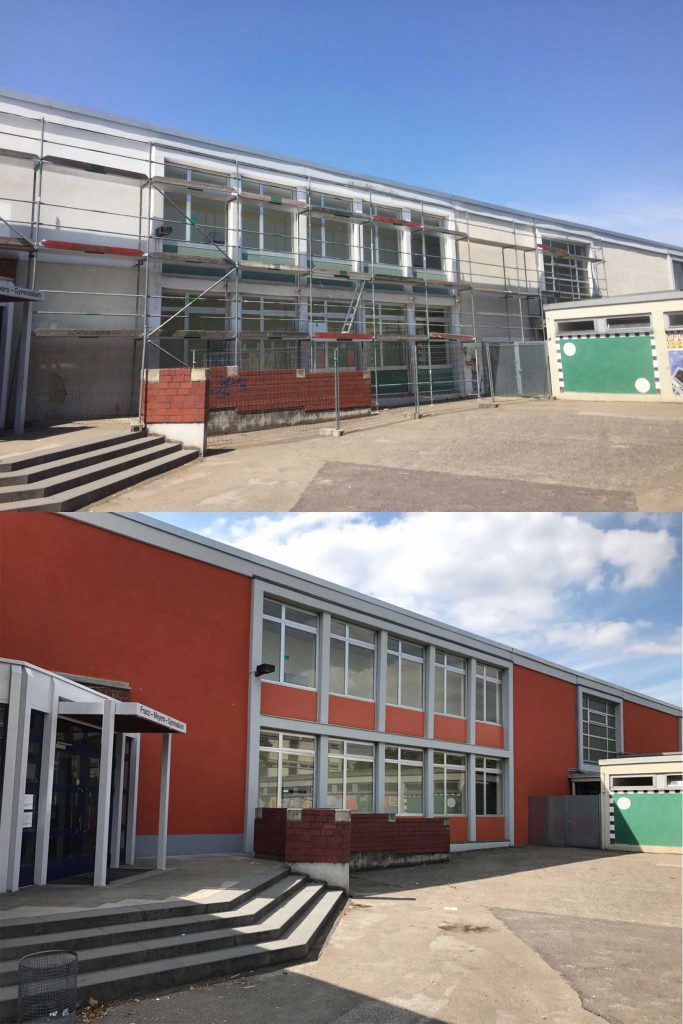 Erste Sanierungsarbeiten sind bereits abgeschlossen, wie der Fachbereich Gebäudemanagement der Stadt jetzt mitteilt: Das Schulzentrum Giesenkirchen am Asternweg hat für rund 10.000 Euro einen neuen Fassadenanstrich erhalten. Und auch in und an weiteren Schulgebäuden wird gemalert: