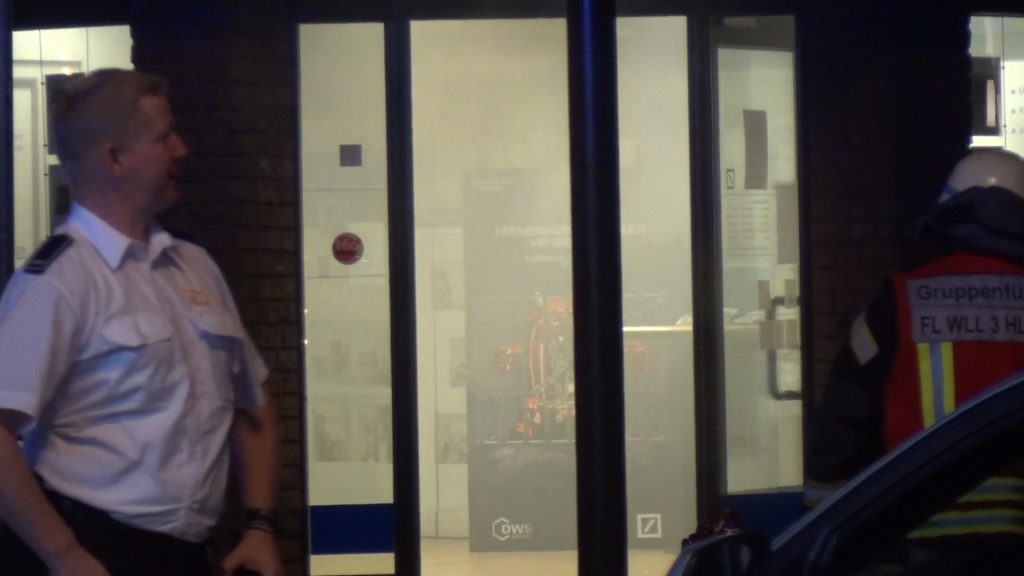 Um 23.09 Uhr dann der nächste Einsatz. Aus dem Gebäude der Deutschen Bank auf der Bahnstraße drang dichter Rauch nach draußen. Die Feuerwehr rückte mit einem Großaufgebot an. Doch von einem Feuer war nichts zu sehen. Wie die Polizei uns am Dienstagmorgen mitteilte, konnte keine Ursache gefunden werden. Hinweise auf eine Straftat oder einen Brand liegen nicht vor. Wahrscheinlich war der Stromausfall die Ursache. Nach erfolgreicher Lüftung des Gebäudes konnte die Einsatzstelle an eine Sicherheitsfirma übergeben werden. Die Schützen und Anwohner nahmen es mit Humor. Verletzt wurde zum Glück niemand.