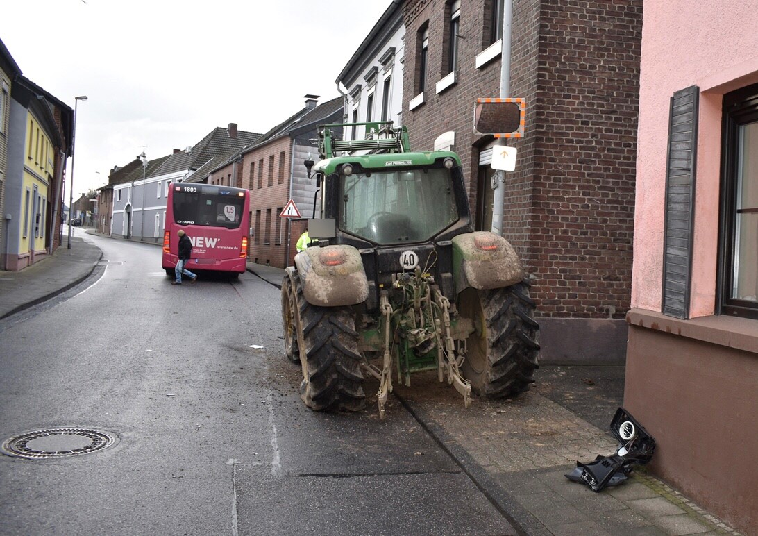 Der Traktor stieß gegen eine Laterne und eine Hauswand.