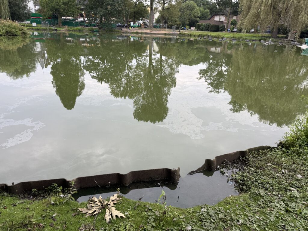 Doch bei genauerer Betrachtung des Gewässers konnte ein schmieriger Film auf dem Weiher entdeckt werden. Wie die Mags auf Nachfrage mitteilte, handelt sich dabei um Schmierstoffe die zum Beispiel bei Hebeln eingesetzt werden. Eine Gefahr für die Tier- und Pflanzenwelt des Weihers gehe davon jedoch nicht aus.