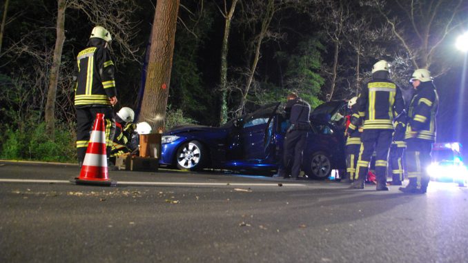 Brüggen (hei). Mittwochabend, gegen 23.50 Uhr: An der L373, das ist die Verbindungsstraße zwischen Brüggen und dem niederländischen Swalmen, steht ein Auto beschädigt an einem Baum. Vorbeikommende alarmieren die Feuerwehr. Die findet das Auto – aber keinen Fahrer. Ob vor dem Unfall eine oder mehrere Personen in dem BMW waren, ist auch nicht klar.